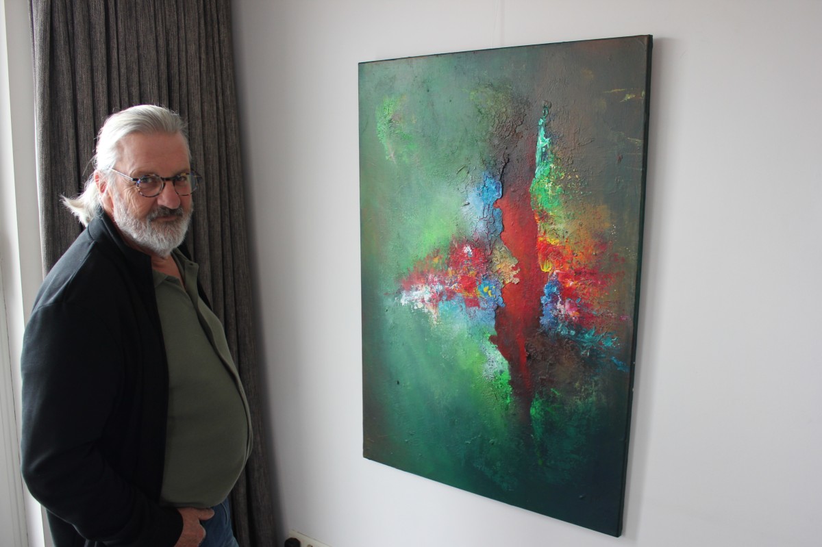 “Ik ben maar een amateurkunstenaar. Ik moet er mijn geld niet mee verdienen en schilder puur voor mijn plezier. En ik ben geen veelschilder. Ik maak een drietal schilderijen per jaar. Voor mij moet niks. Echt moeilijke aspecten zijn er dus niet voor mij. Er mag alleen geen stress bijkomen, anders doe ik het niet. Ik merk dat echt. Als ik in opdracht van iemand een werk maak, dan is dat toch moeilijker. Dan ben ik te veel bezig met welke kleuren die mensen graag zouden zien of waar ze net van houden. Maar het is dan wel erg fijn als ze hun werk uiteindelijk mooi vinden. Weet je, je moet altijd kunnen uitproberen. En als het niks wordt, gaat het gewoon de vuilnisbak in. Dat is ook geen probleem.”