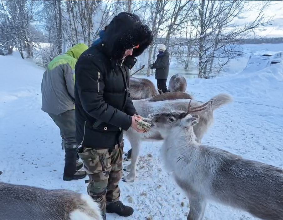 “Zeker! Elanden, rendieren, lynxen. Er zitten hier ook beren. Met een collega trek ik er geregeld op uit om te jagen op hazen. Komende zondag is er een jacht op lynxen. Het dikke pak sneeuw maakt het extra moeilijk voor de jagers en de honden. En wat dat kamperen betreft: We zullen zien of het er dit jaar van komt, maar voor Rowena zullen we dan toch maar een luchtmatras meepakken in plaats van zo’n dun matje. Ze is zwanger van ons eerste kindje!”