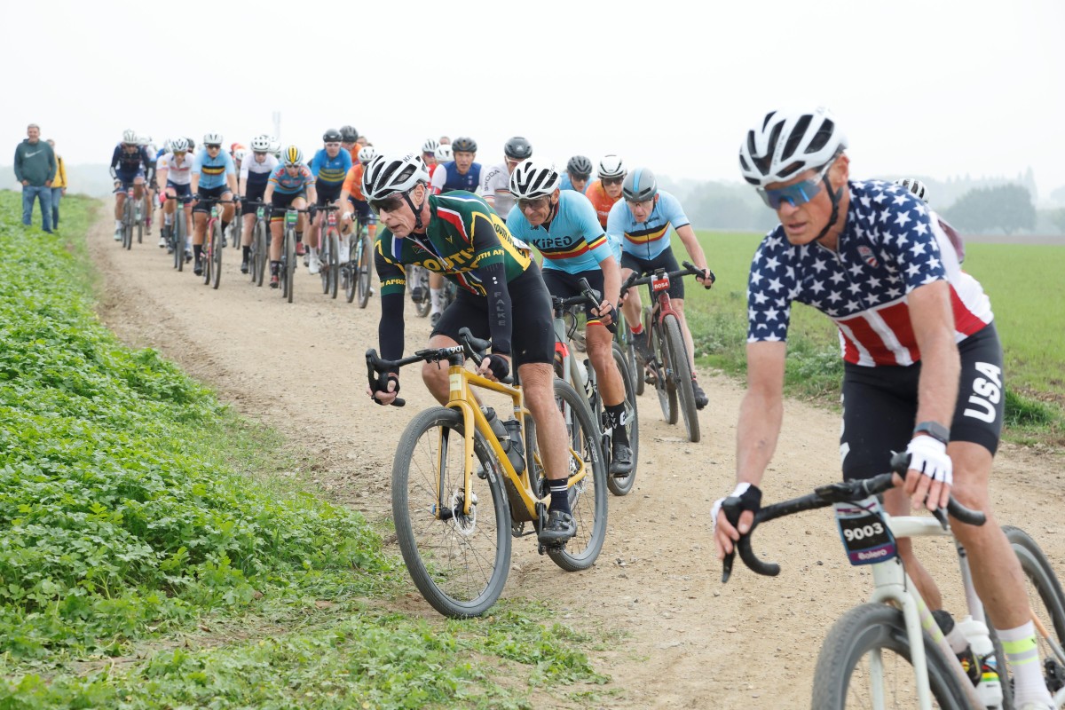 “Begin dit jaar. Ik heb nog maar sinds vorige zomer een gravelfiets, maar was meteen verkocht aan het gravelen. Ik merkte al snel dat ik er goed in was. Omdat ik dit jaar 70 zou worden, mocht ik al vanaf begin dit jaar in die age group van 70 tot 75 jaar starten. Als ‘jonge’ 70’er heb je dan een lichte voorsprong tegenover de mannen die enkele jaren ouder zijn. Ik heb in maart meegedaan aan de eerste kwalificatiewedstrijd in Turnhout en die kon ik meteen winnen. Dan begin je te dromen van het Belgisch kampioenschap dat in eigen streek, in Westerlo, zou plaatsvinden. Daarna kwam dan het EK in Italië en de bekroning met het WK in Maastricht.”