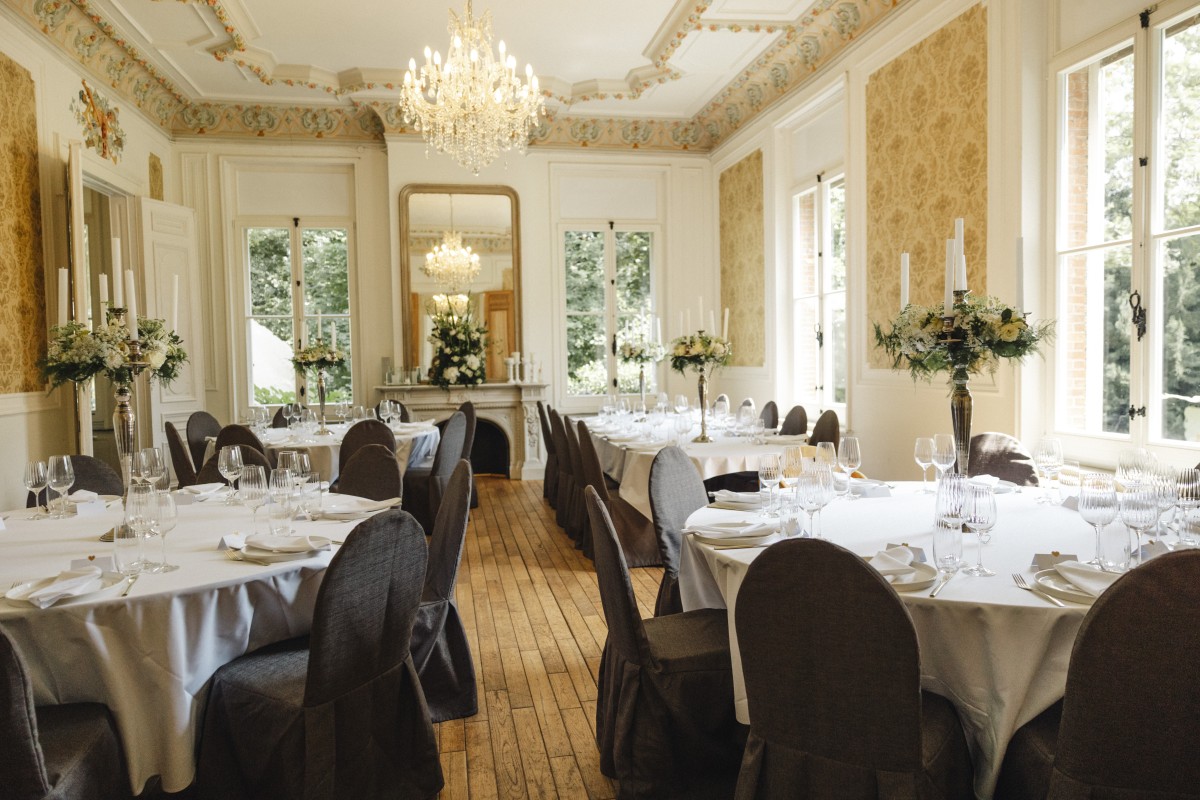 “Bij een feest kunnen we binnen tot 120 mensen een plekje geven. Je kan buiten een receptie organiseren of beneden in de kelder van het kasteel om dan bijvoorbeeld later voor de maaltijd te verhuizen naar de grotere zalen.” Ook zaaltjes apart afhuren kan altijd. Zo kan je hier zowel in kleine als grote gezelschappen terecht. Het Kasteel van Meerlaer vormt zo ook een toplocatie voor bedrijfsevents en meetings. Dat kan met ontbijt, lunch, diner of met culinaire hapjes. “Voor teambuildings hebben we vaste lokale partnerschappen die allerlei toffe activiteiten kunnen aanbieden”, vertellen Pascal en Ann.