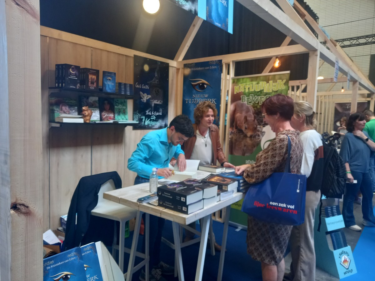 De liefde voor verhalen en literatuur straalt van Matthias Boonen af als ik hem naar het ontstaan van de Kempense Boekenbeurs vraag, die op zondag 30 november in Lichtaart voor het eerst zal plaatsvinden. Het is de Lichtaartse uitgeverij Fantasynovels die de beurs organiseert. “Eigenlijk willen we in de eerste plaats de verbinding tussen auteurs en lezers weer aanhalen”, zegt Matthias, die al drie boeken uitbracht bij die uitgeverij. “Veel schrijvers zijn die connectie een beetje kwijt. Ze zijn vooral bezig met het verkopen van hun boeken en niet meer met een glimlach op het gezicht van hun lezer te brengen. Ik snap het ergens wel: het kost vaak veel geld om een boek op de markt te brengen en dus is die verkoop steeds belangrijker. Maar als auteur is het ook je taak om mensen te helpen om de juiste boeken te vinden. Je hoort wel vaker dat mensen minder lezen dan vroeger, maar auteurs hebben daar ook een belangrijke rol in. Als ze opdringerig een boek verkopen aan iemand die eigenlijk niet in hun verhaal geïnteresseerd is, zonder hem te helpen in zijn zoektocht, gaat dat op lange termijn nadelig zijn voor de hele sector. Zo’n mensen haken af en krijgen nooit de boeken te lezen waar ze eigenlijk enorm van zouden kunnen genieten.”
