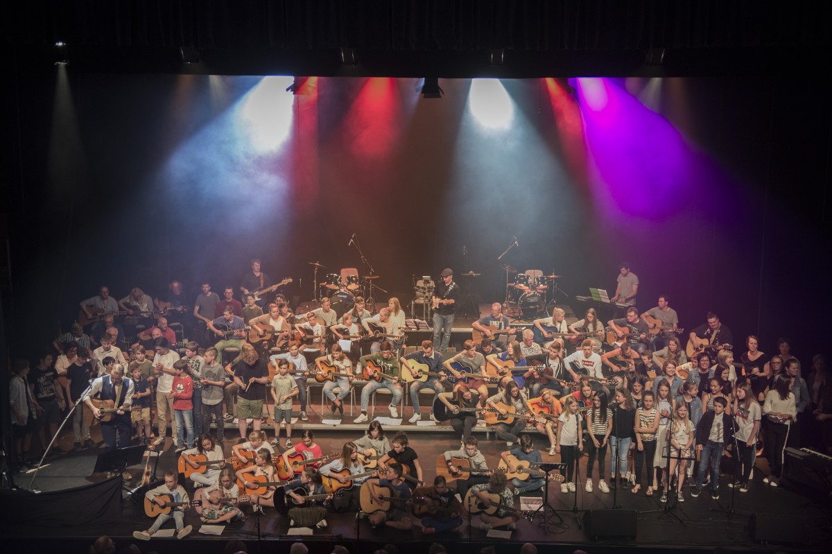 In het jaar voor de coronacrisis telde de Molse Gitaarschool net geen duizend leerlingen. Want Mol was al een beetje te klein geworden. Er waren vestigingen bijgekomen in Schilde, Lier en Wilrijk. De Gitaarschool is ook een uniek project. Notenleer is niet vandoen: joepie! Het gaat zelfs verder dan het virtuoos tokkelen à la José Feliciano of boenken als Status Quo. Je kan er uiteraard leren gitaar spelen maar ook wie de basgitaar wil beheersen als heet hij Paul Mc Cartney, het drumstel wil laten trillen, zelfs wil leren zingen, piano of ukelele spelen. Klop maar aan.