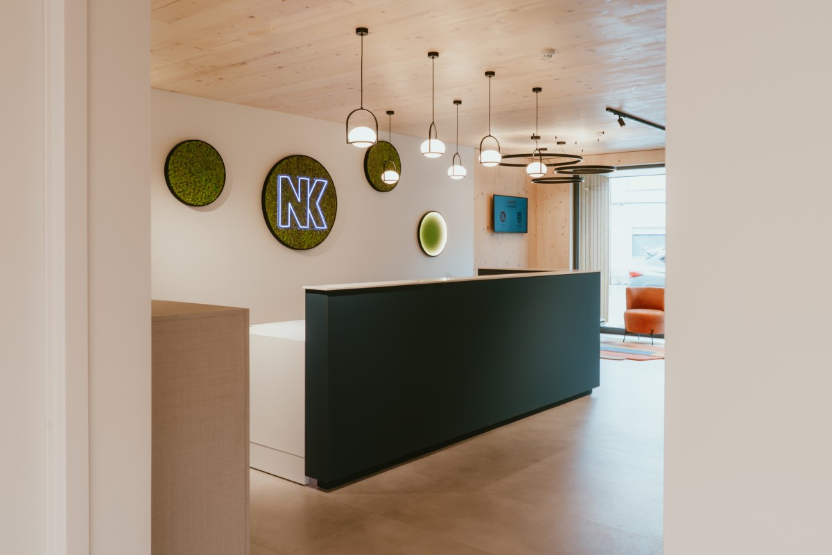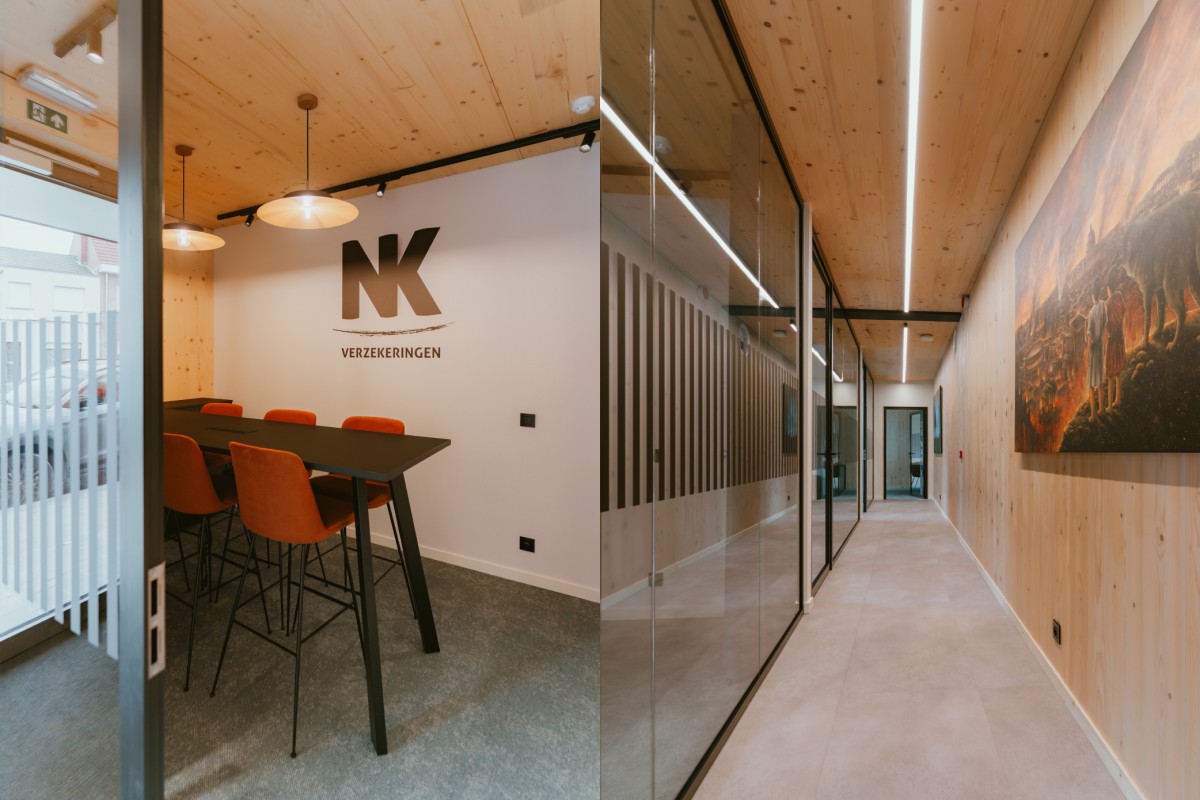 Het nieuwe kantoor in Arendonk luidt een nieuw hoofdstuk in voor NK Verzekeringen. Mario volgde het bouwproject van heel dichtbij op. “Het is een CLT-bouw en hierdoor uiterst duurzaam. Het slaat CO2 op in plaats van af te geven. Dankzij geothermie en andere technieken is het state-of-the-art als het gaat om duurzaamheid. Anderzijds kozen we voor een esthetisch en lichtrijk ontwerp. Voor onze collega’s is het veel plezanter om in een rustgevende omgeving te werken of klanten te ontvangen. We kunnen vanaf nu ook digitaal vergaderen in volledig uitgeruste meeting rooms. Bovendien kan je hier makkelijk parkeren, want dat is ook niet onbelangrijk. Alles is voorzien om zowel onze medewerkers als onze klanten in de beste omstandigheden samen te brengen. Klaar voor de toekomst, waar vertrouwen, koffie en gewoon goeie service – net als vroeger – centraal blijven staan.”