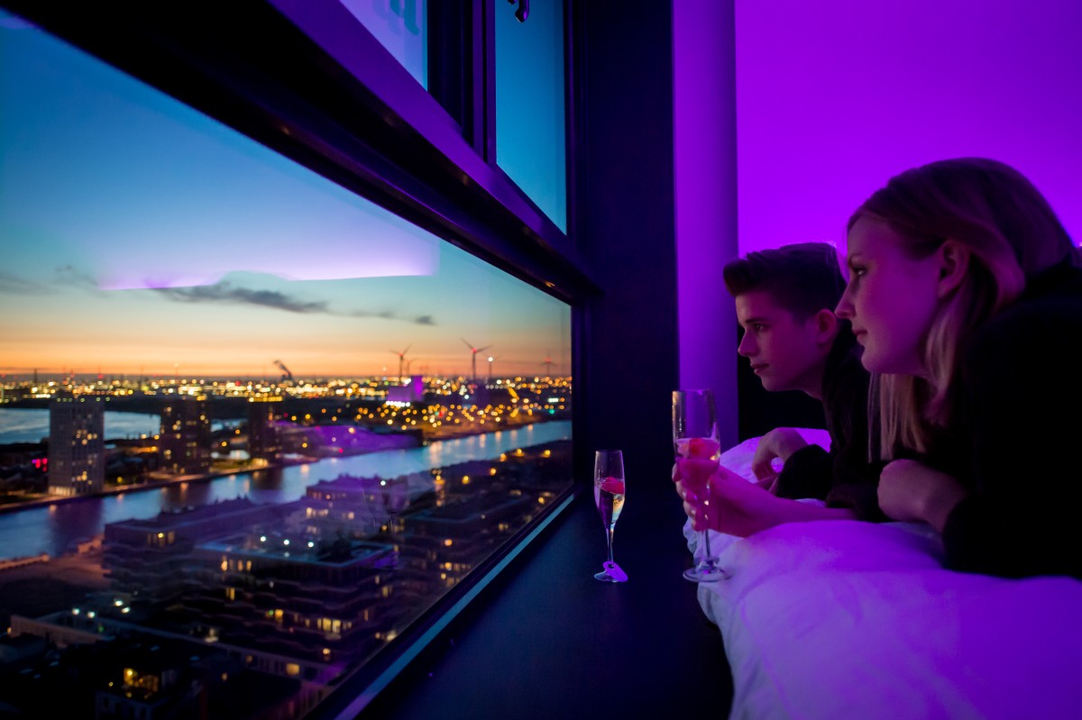 Noozen in je exclusieve privé wellness-penthouse met verbluffende Skyline op de 21ste verdieping.