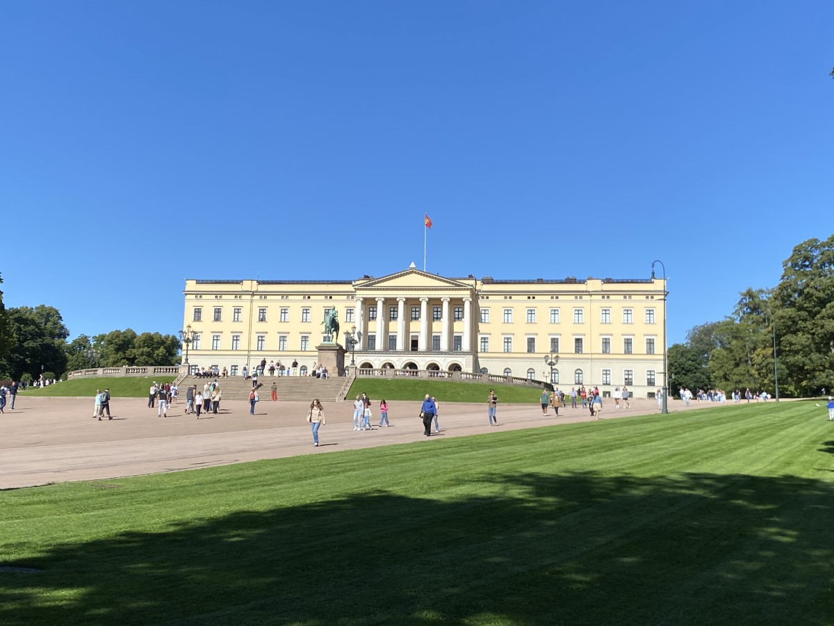 ‘Slottparken’ heet het park rond het koninklijk paleis. Dat paleis kan je bezoeken, maar enkel in de zomermaanden mits reservatie en met een gids. Nee, zo groot is mijn interesse nu ook weer niet. Net als België is Noorwegen een monarchie met op de bovenste ladder Koning Harald en Koningin Sonja. Geen idee of ze thuis zijn of niet, maar er is wel beweging wanneer ik tot bij de ingang wandel. Een vijftal erewachten in officieel uniform stappen in gestrekte pas naar een gebouw aan de zijkant. Vervolgens stappen er twee parmantig naar een wachthokje met nog een extra wachter om deze af te lossen. Tientallen toeristen slaan het gebeuren gade. In Londen heet dit ‘changing of the guard’. In Kopenhagen zag ik ook al iets gelijkaardig. Het blijft een beetje maf en lijkt me toch vooral een ceremonie om toeristen te plezieren.