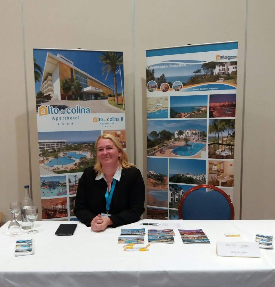 Caroline Terheggen: “Na een opleiding toerisme ben ik aan de slag gegaan bij Aviapartner. Ik heb dit in het begin nog even gecombineerd met een deeltijdse job als airhostess bij Brussels Airlines. Na 8 jaar ben ik mijn luchthavenshiften gaan combineren met deeltijds een reisbureau wat als snel voltijds werd. Mijn droom was altijd om in Spanje te gaan wonen en na een tijdje spontaan soliciteren kreeg ik een job aangeboden bij Prestige-hotels in Rosas, aan de Costa Brava waar ik 4 jaar de sales deed voor de internationale markt van een hotelgroep met 5 hotels. Op een dag werd ik gecontacteerd door Alfagar Hotel in Albufeira die mij vroegen of ik voor hen wilde werken. Ik zag het eigenlijk helemaal niet zitten om uit Spanje weg te gaan, maar ze hebben mij een vlucht betaald en mij op 3 dagen kunnen overtuigen de stap te zetten. Ik ben vervolgens helemaal alleen met een camion vol meubels naar het zuiden gereden. De eerste maanden had ik spijt, want de Portugese cultuur is toch wel heel anders. Spanjaarden hebben een drukker sociaal leven. Portugezen blijven liever thuis en met famillie. Dus best wel eenzaam als je daar geen famillie hebt. Maar dat is na 15 jaar natuurlijk wel veranderd.”