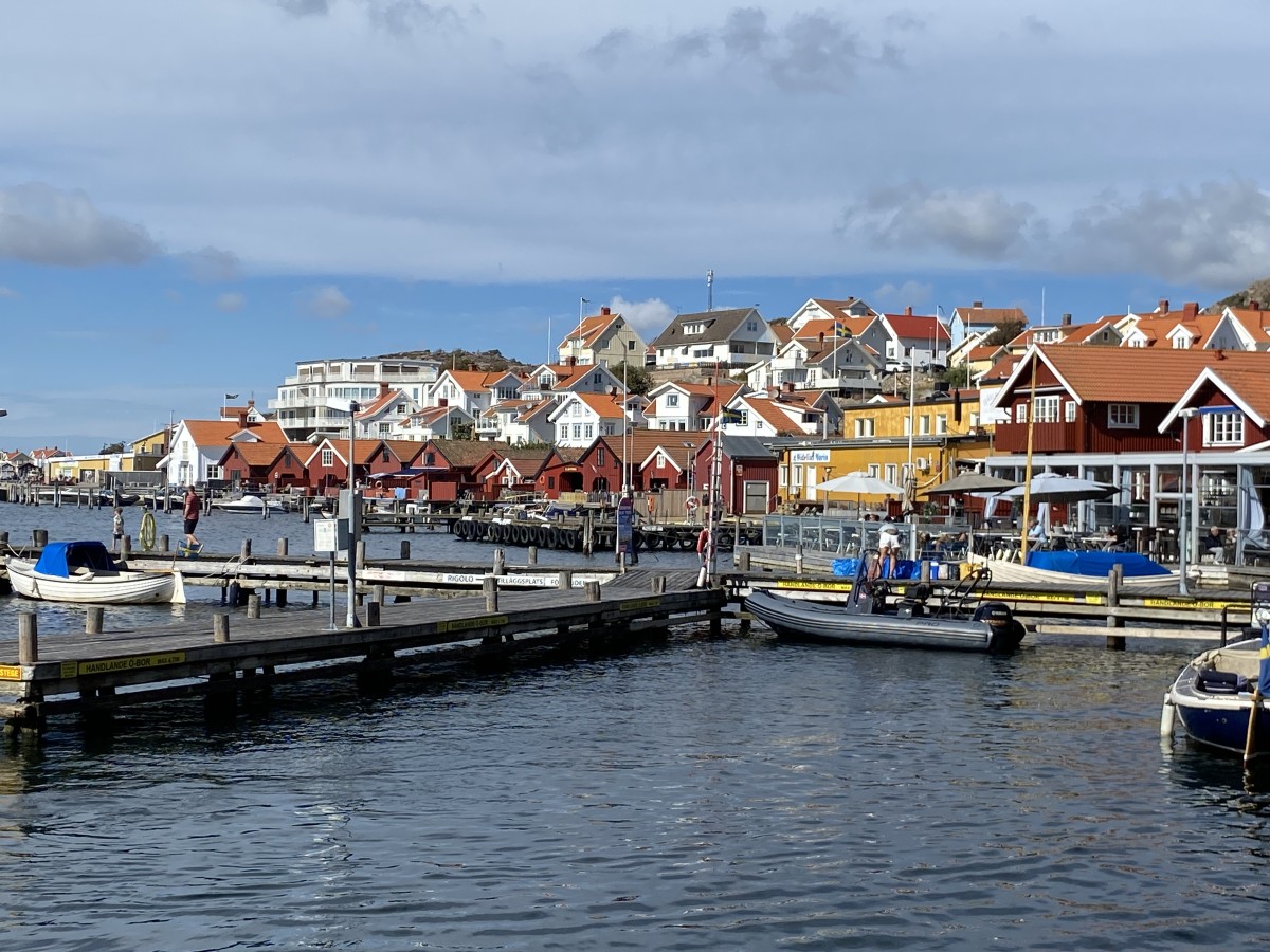 De rotsachtige westkust van Bohuslän is bezaaid met dorpen die zo op een postkaart kunnen. Het vissersdorp Smögen is er daar een van. Het hart van Smögen wordt gevormd door Smögenbryggan, de lange houten pier langs de haven. Aan weerszijden staan felgekleurde vissershuisjes, tegenwoordig vooral in gebruik als winkels, cafés en restaurants. Het geheel oogt toeristisch. In de ochtend, vooraleer de terrassen vollopen, wandel ik over de pier en die is nu vooral een werkplek. Vissers maken hun boten klaar en leveranciers rijden af en aan. Achter de haven begint meteen een ander landschap. Smalle straten lopen omhoog de rotsen op, langs woningen die zich aanpassen aan het grillige terrein. Bovenop de heuvels liggen wandelpaden die een uitzicht bieden over de zee en de eilandjes.