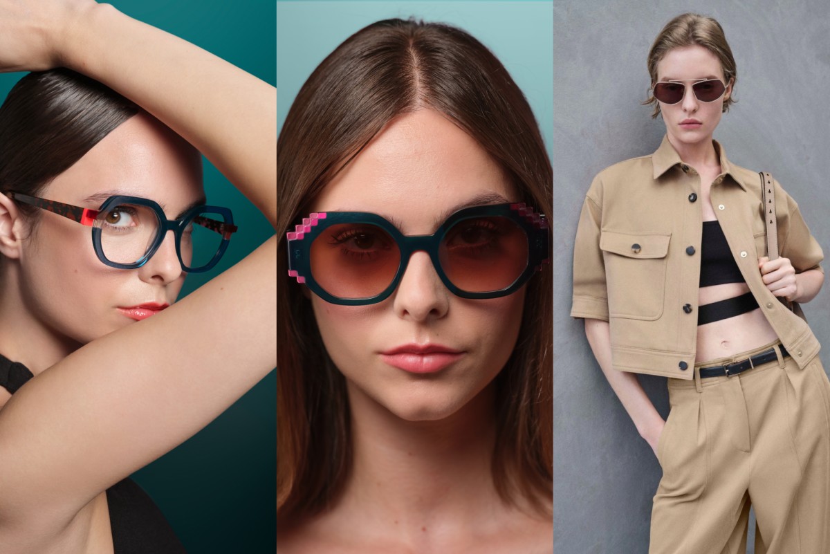 De inspiratie lijkt te balanceren tussen verleden en toekomst. Enerzijds zijn er duidelijke verwijzingen naar de jaren zeventig en tachtig: ronde silhouetten, dubbele neusbruggen, dikke randen en glamourachtige oversized zonnebrillen die doen denken aan iconische filmsterren. Anderzijds duiken er futuristische elementen op. Strakkere lijnen, onverwachte geometrieën en asymmetrische details geven sommige monturen een bijna conceptuele uitstraling. Minimalistische metalen frames met een dun profiel contrasteren sterk met de volumineuze acetaatmodellen. Het samenspel tussen die twee werelden – nostalgie en innovatie – maakt de collectie spannend en veelzijdig. Je kunt dus kiezen: ga je voor zachte vintage charme of voor een vooruitstrevende, bijna avant-gardistische look? Of combineer je beide in één opvallend ontwerp? Deze grenzen verleggende monturen zijn perfect voor wie durft te experimenteren en uniek voor de dag wil komen.