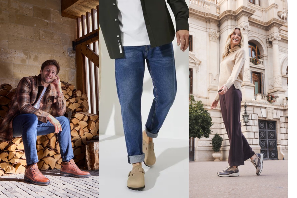 Hoewel platte schoenen populair zijn, maken kleine, klassieke pumps en kitten heels, vooral met een puntige neus, ook een comeback. Peeptoe-modellen zijn een andere variatie op klassieke hakken. Meer comfort? Daar is de carréneus. Deze vierkante tip zie je vooral terug in loafers, ballerina’s en enkellaarsjes. Elegant, modern en een tikkeltje avant-garde. Combineer met rechte broeken of een minimalistische jurk. Bij heren zie je hetzelfde in de richting van robuuste boots, hiking-inspiratie, en veterschoenen met goede grip. Klassieke nette schoenen, denk aan veters en loafers, in rijke tonen, vaak met subtiliteit in details, kleur en afwerking.
