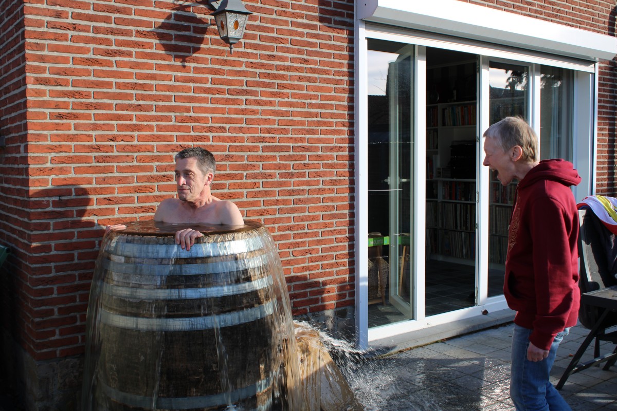Net geen veertig jaar later ben ik klaar voor the real deal. Dit keer wordt het alles of niets, zwemmen of verzuipen, een echte man of voor altijd een mietje. Een prospectie op het net leert dat ijsbaden verkrijgbaar zijn in alle vormen en maten. Vooral het bedrijf Houten Tonnen wekt mijn aandacht. “Wij zoeken in veel Zuid-Europese landen naar oude kwalitatieve wijntonnen”, zegt zaakvoerder Jannick Scheers. “Die krijgen bij ons een tweede leven door ze te upcyclen en opnieuw te gebruiken als waterton of decoratiestuk. Of om in te baden, dat kan ook.”