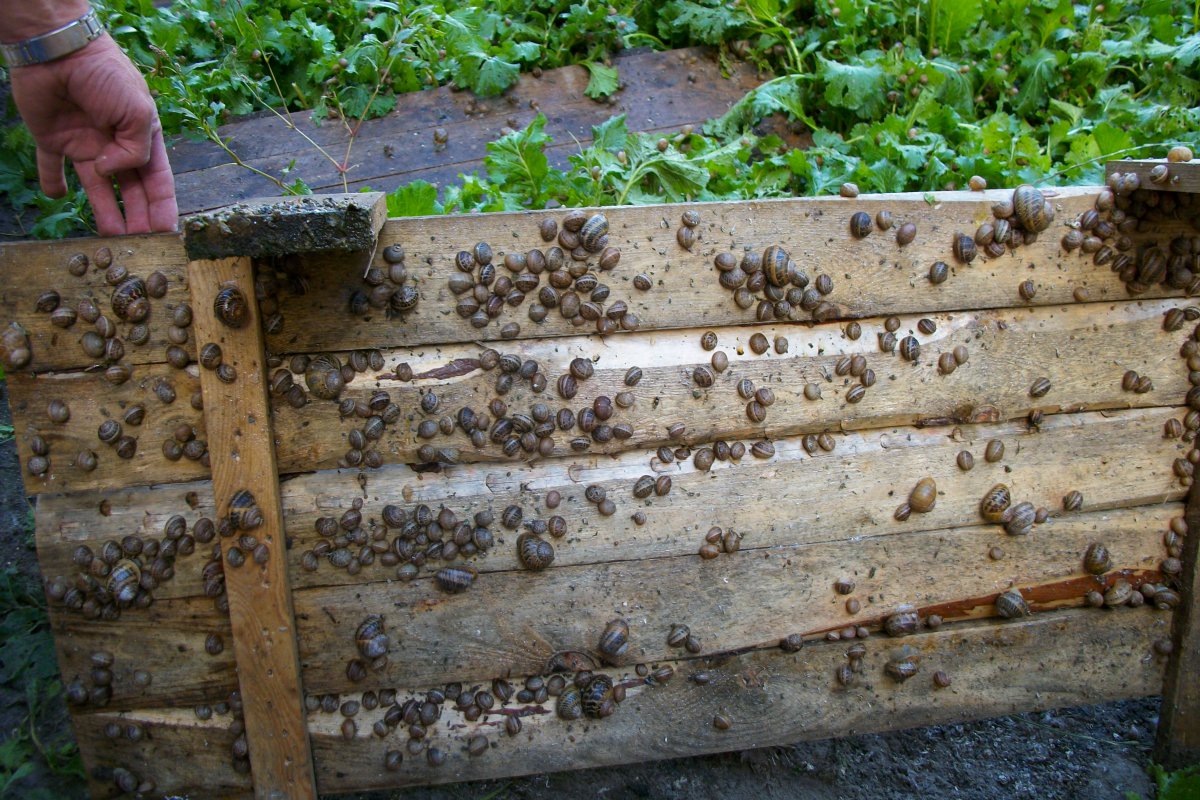 “Op dit perceel liggen 500 paletten, een beetje schuin. Tussendoor zijn planten gezaaid die als voeding voor de slakken dienen. Je merkt dat ze een beetje op het loof van rapen lijken. Maar de plant is nergens anders goed voor tenzij als voer voor de slakken. De jonge slakken worden uitgezet en als ze seksueel rijp zijn, beginnen ze eitjes te leggen. Die eitjes worden voor een deel geoogst, voor een deel groeien ze uit tot slakken. Die geoogste eitjes worden soms verkocht als een soort kaviaar. Ze zijn groter dan visseneitjes en dienen ook anders behandeld te worden. Om ze als perles de gris te gebruiken, dienen ze manueel gewassen te worden. Bij visseneitjes gebeurt dit machinaal. Tegen de avond worden de slakken actief, beginnen ze te eten en troepen ze samen aan de onderkant van de paletten.”