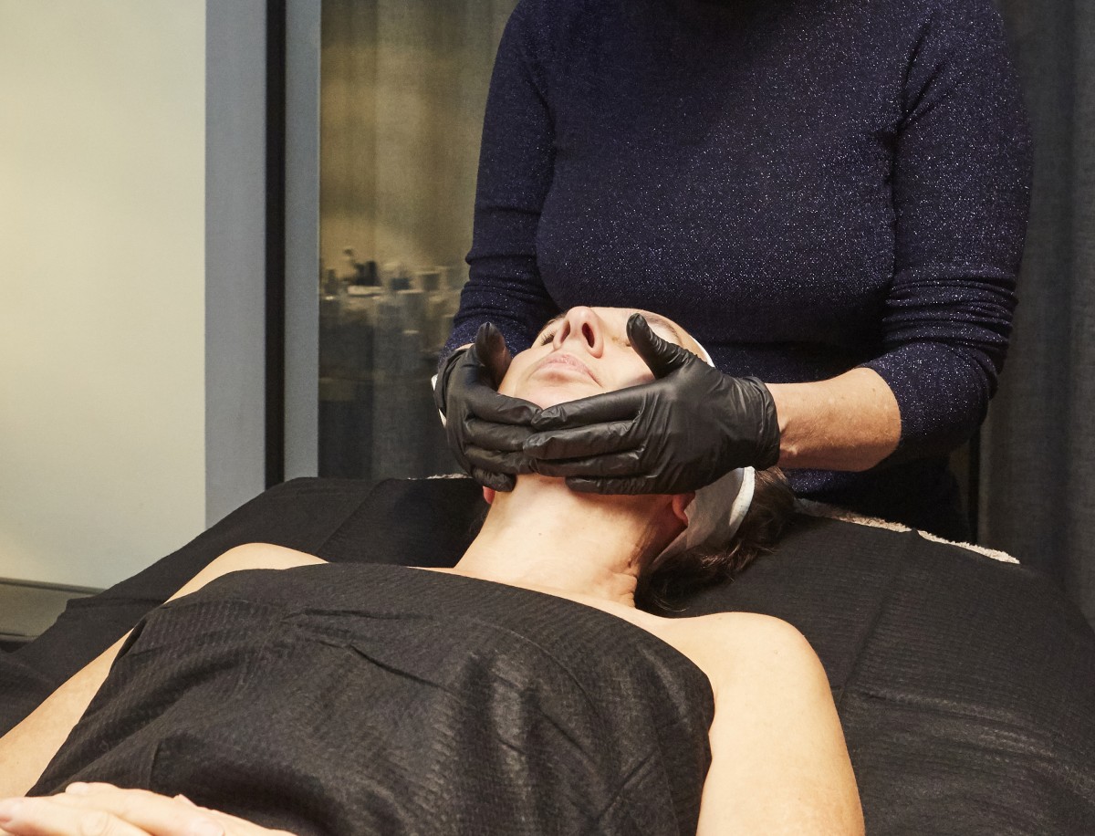 Tijdens de behandeling zakt mijn aandacht langzaam naar binnen. Op een bepaald moment bereidt Inez mijn gezicht zorgvuldig voor en werkt ze voorzichtig aan de binnenkant van mijn wangen. Een nieuwe, verrassend diepe ervaring. “Deze intra-orale techniek werkt precies op de spieren die we onbewust aanspannen bij stress, denken en overprikkeling”, legt ze uit. “Ze staan in verbinding met nek, schouders en zelfs ogen.” Het aanraken van die diepliggende kaakspieren voelt intens. Maar meteen daarna merk ik hoe mijn gezicht verzacht, alsof er ruimte ontstaat. Niet alleen fysiek, ook mentaal lijk ik ruimer te kunnen ademen. Naast ontspanning stimuleert de massage de doorbloeding en lymfestroom, waardoor mijn huid voller, rustiger en frisser aanvoelt, zonder ingrepen of injecties. Zelfs de spanning in mijn nek en rug vermindert voelbaar. Massages waren nooit echt mijn ding, maar deze vorm van werken — dieper, rustgevender en tegelijk enorm losmakend — doet me onverwacht veel.